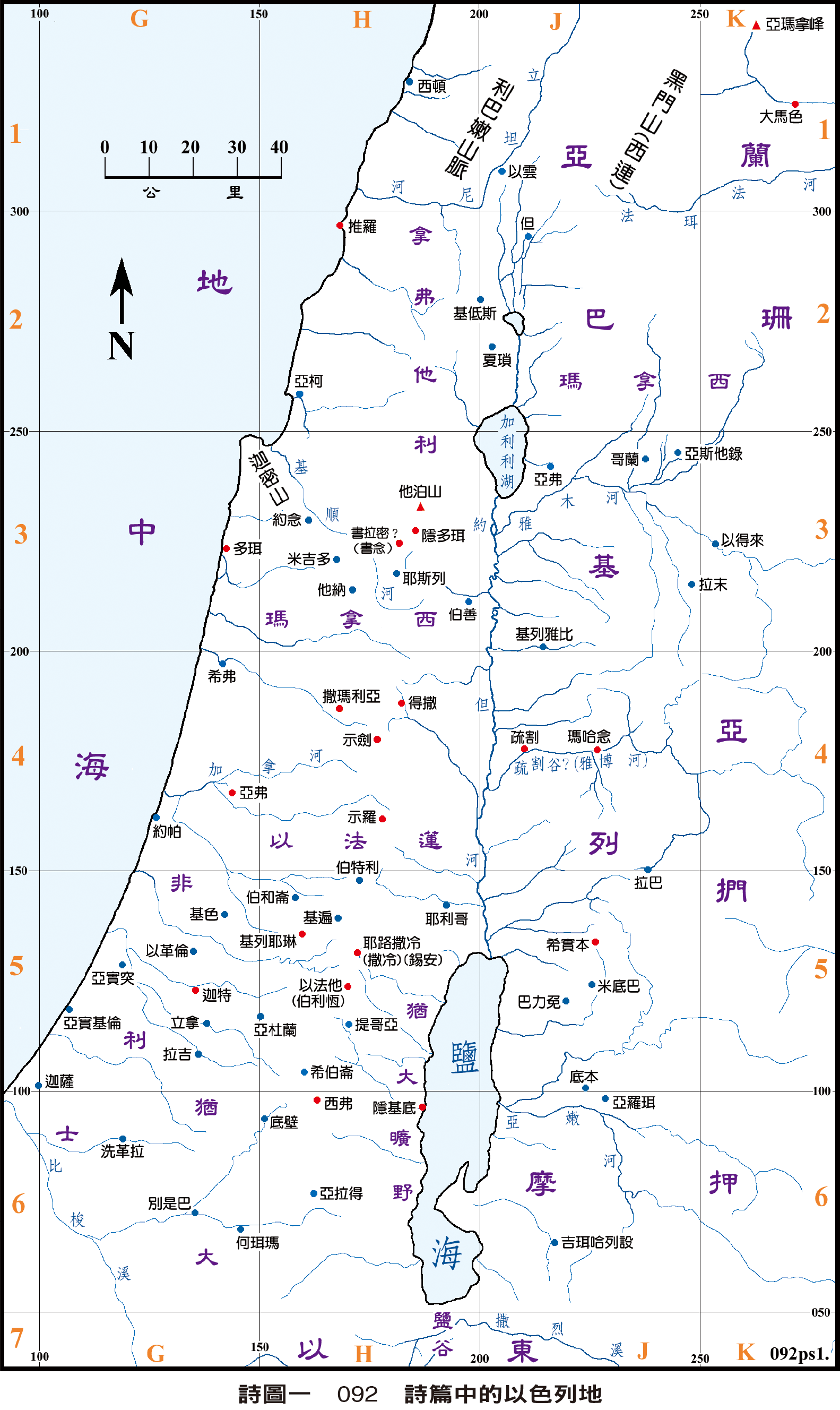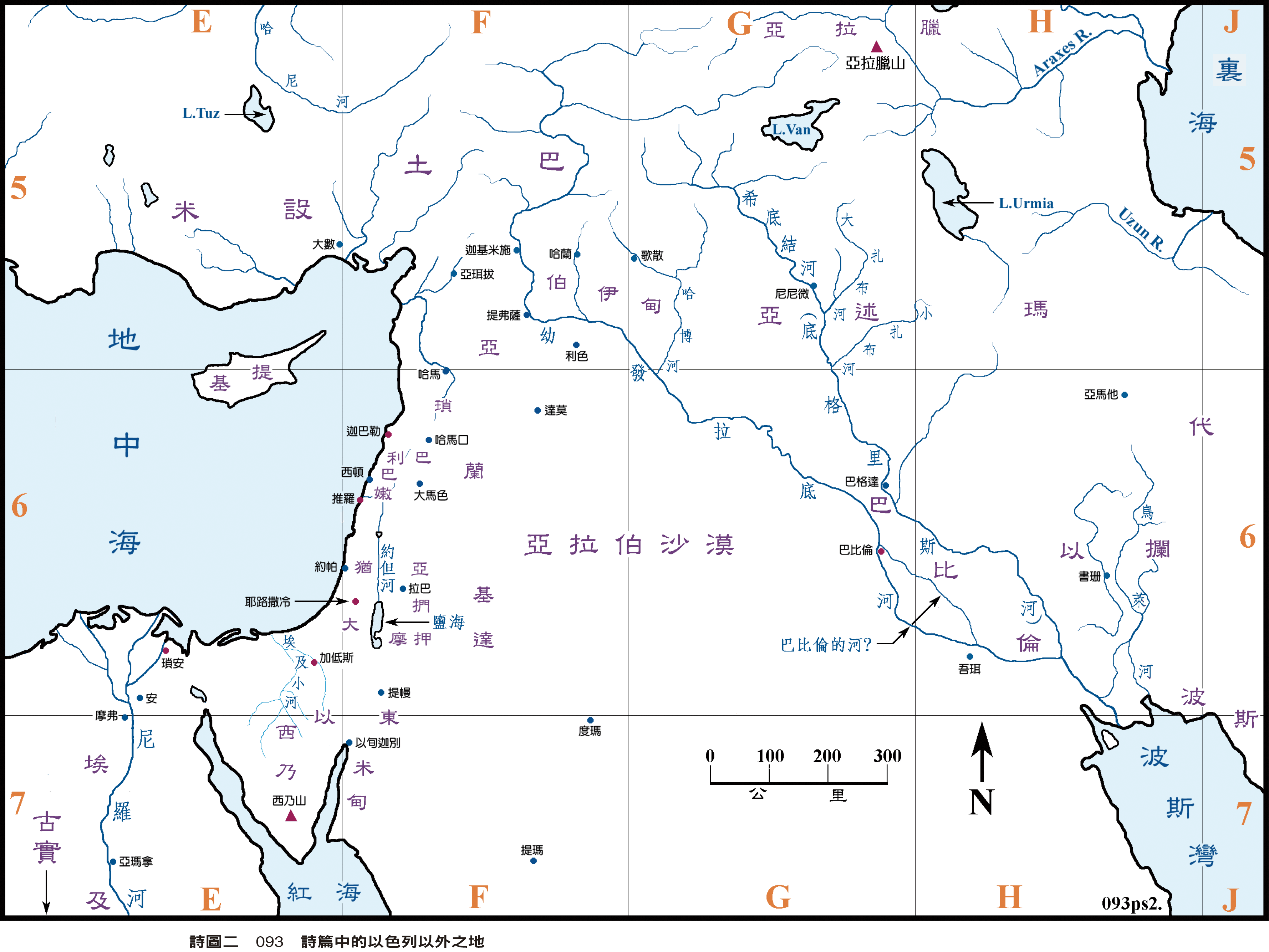 92 詩圖一 092 詩篇中的以色列地93 詩圖二 093 詩篇中以色列以外之地