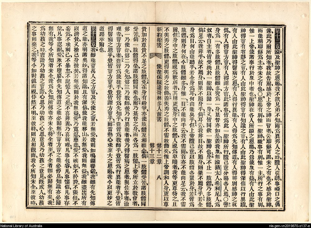 1886年新约全书 哥林多前书 12 章 1 节到 13 章 12 节