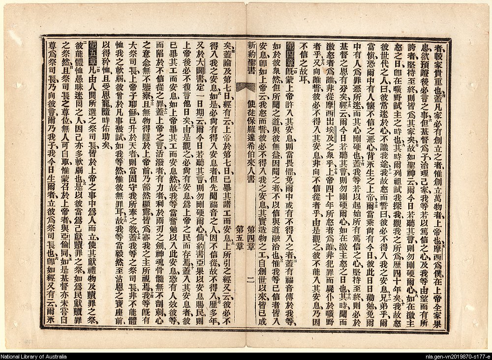 1886年新约全书 希伯来书 3 章 4 节到 5 章 6 节