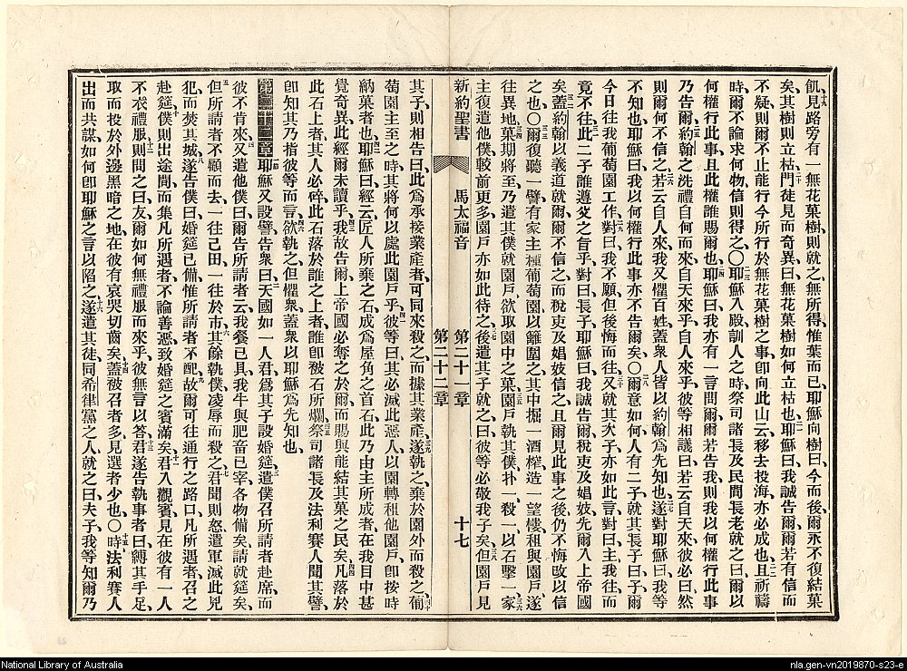 1886年新约全书 马太福音 21 章 19 节到 22 章 16 节