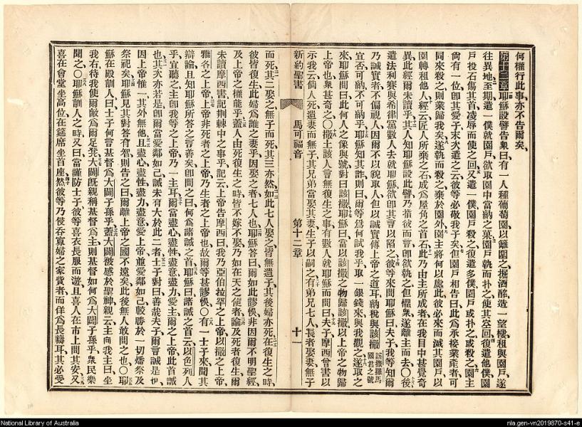 1886年新约全书 马可福音 11 章 33 节到 12 章 40 节