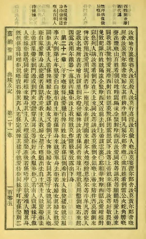 1923年新旧约全书 出埃及记 20 章 13 节到 21 章 10 节