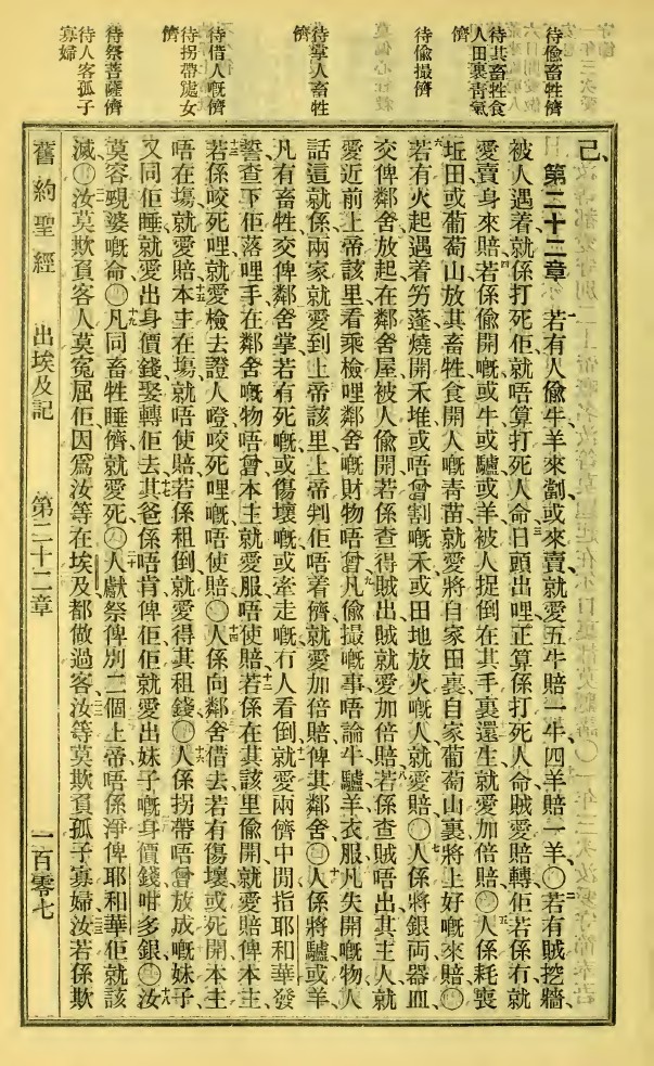 1923年新旧约全书 出埃及记 21 章 36 节到 22 章 23 节