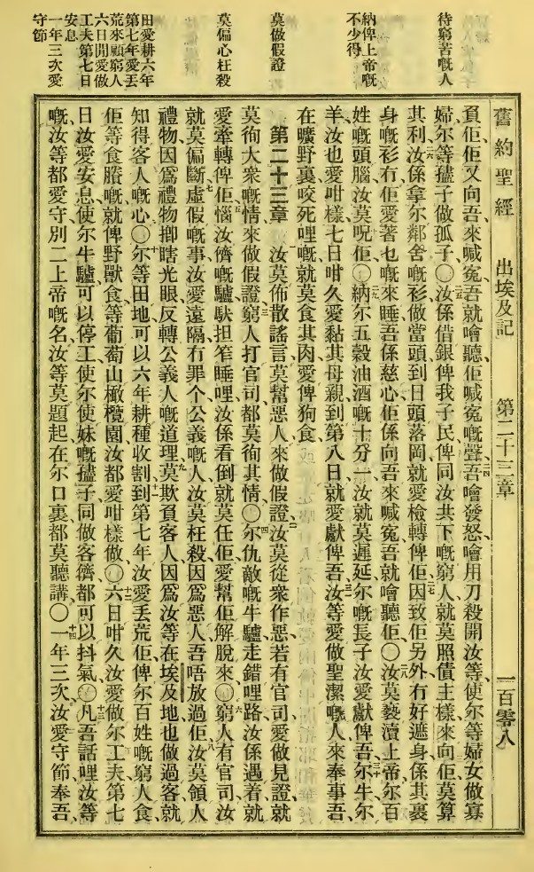 1923年新旧约全书 出埃及记 22 章 24 节到 23 章 14 节