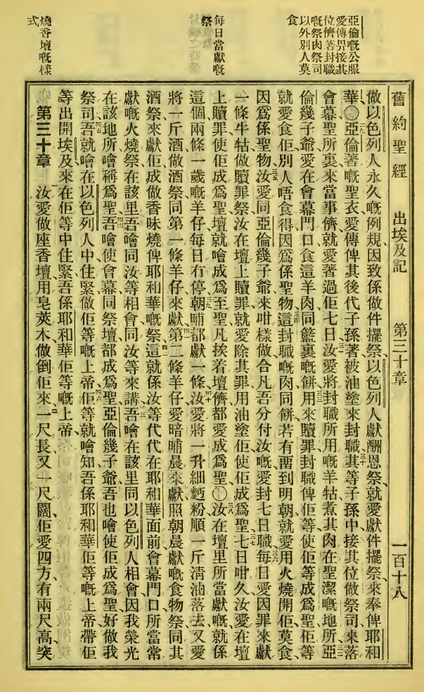 1923年新旧约全书 出埃及记 29 章 29 节到 30 章 2 节