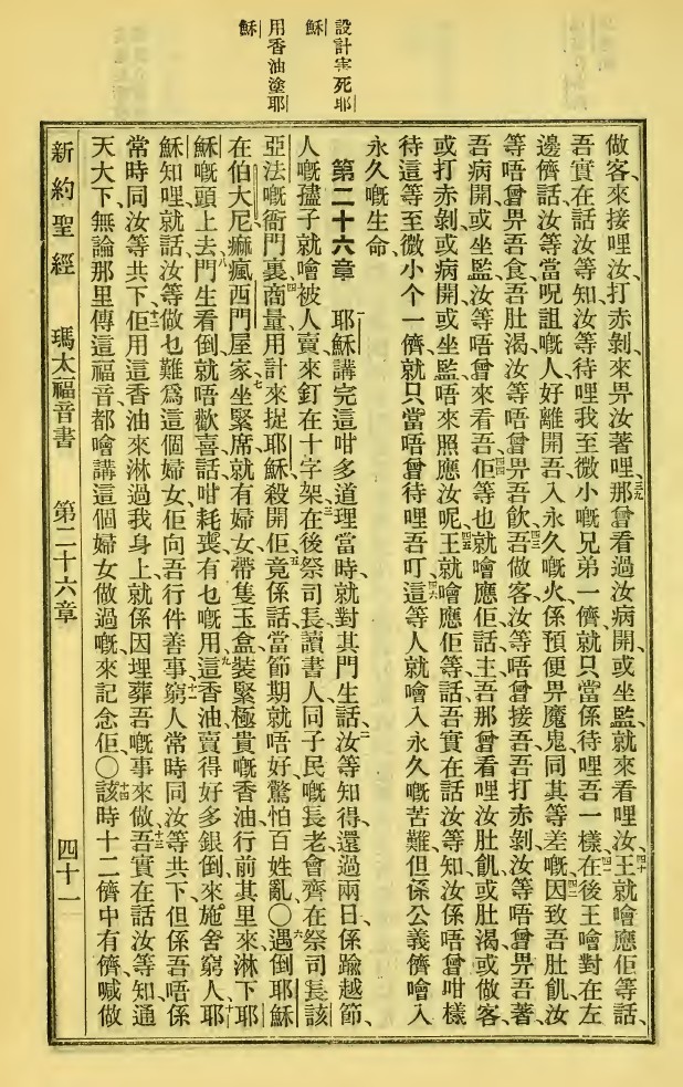 1923年新旧约全书 马太福音 25 章 38 节到 26 章 14 节