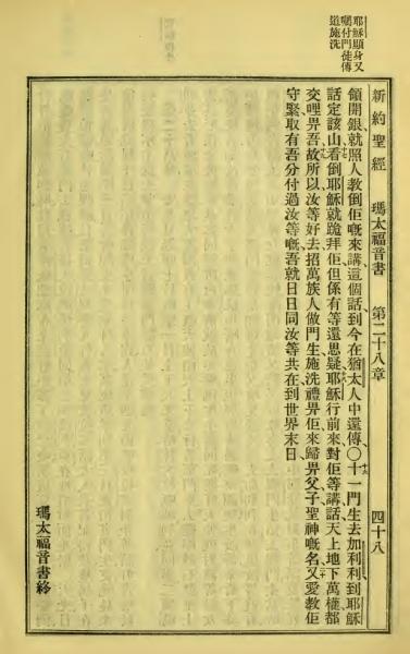 1923年新旧约全书 马太福音 28 章 15 节到 28 章 20 节