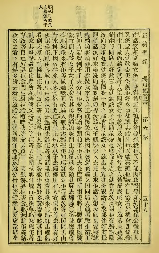1923年新旧约全书 马可福音 6 章 18 节到 6 章 39 节