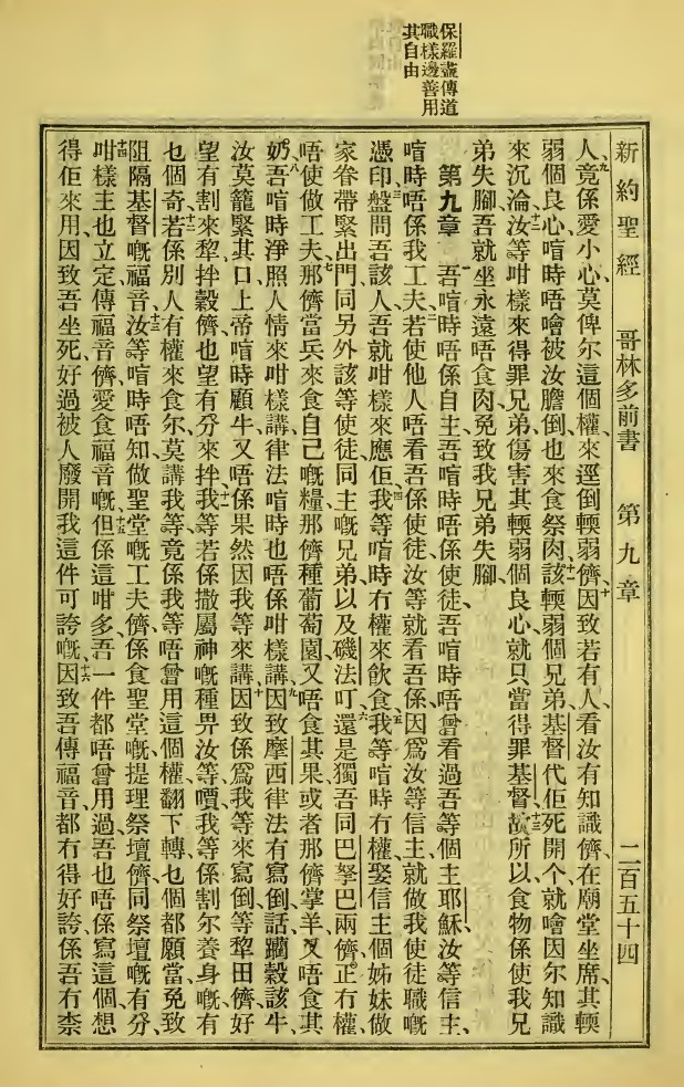 1923年新旧约全书 哥林多前书 8 章 9 节到 9 章 16 节