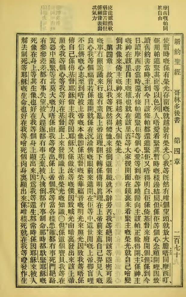 1923年新旧约全书 哥林多后书 3 章 11 节到 4 章 12 节