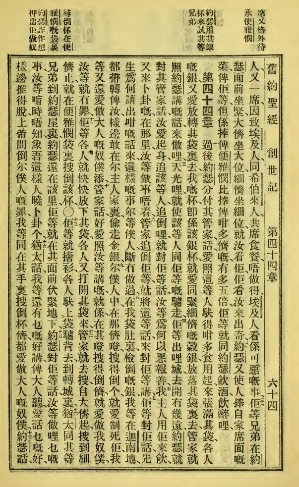 1923年新旧约全书 创世记 43 章 33 节到 44 章 17 节