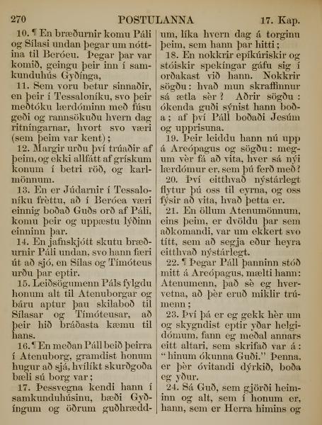 1863年冰岛语新约全书 使徒行传 17 章 10 节到 17 章 24 节