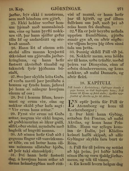 1863年冰岛语新约全书 使徒行传 17 章 25 节到 18 章 4 节