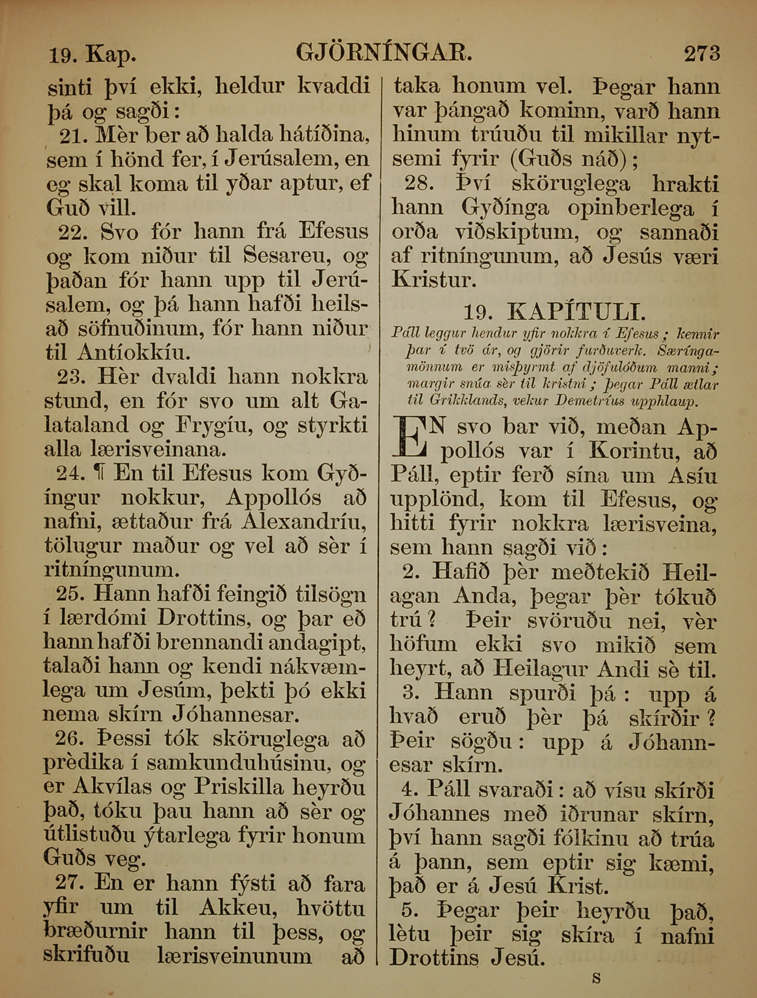 1863年冰岛语新约全书 使徒行传 18 章 21 节到 19 章 5 节