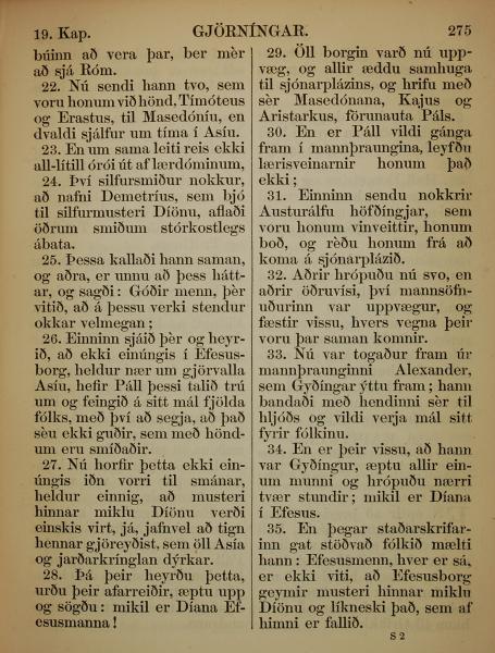 1863年冰岛语新约全书 使徒行传 19 章 22 节到 19 章 35 节