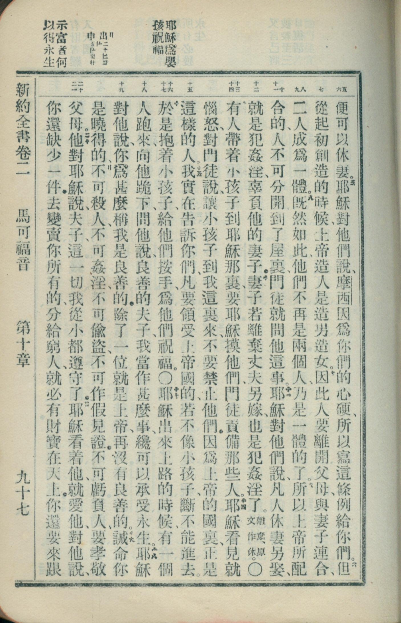 1908年新約全書(官話和合本) 馬可福音 10 章 5 節到 10 章 21 節