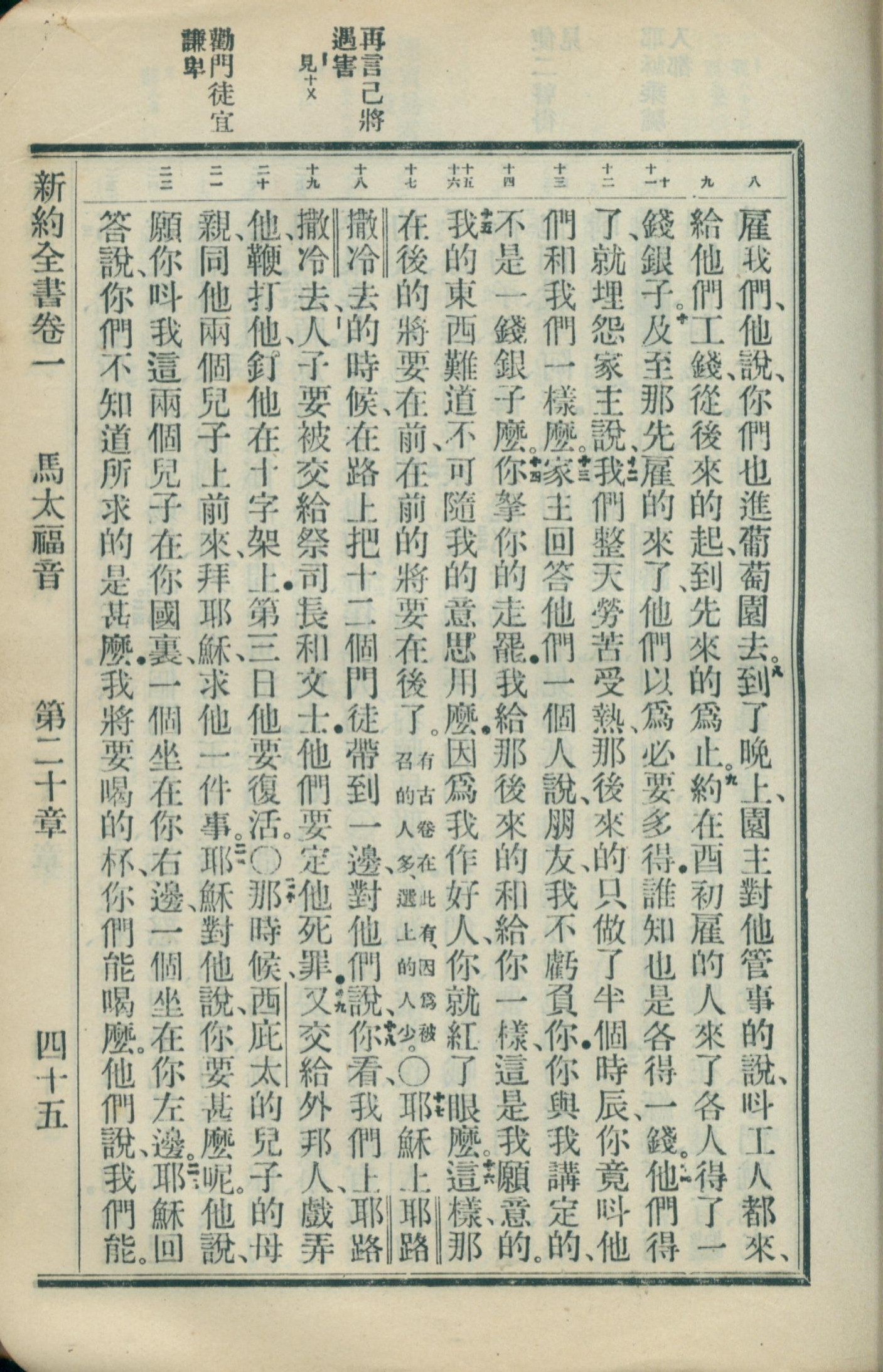 1908年新約全書(官話和合本) 馬太福音 20 章 8 節到 20 章 22 節