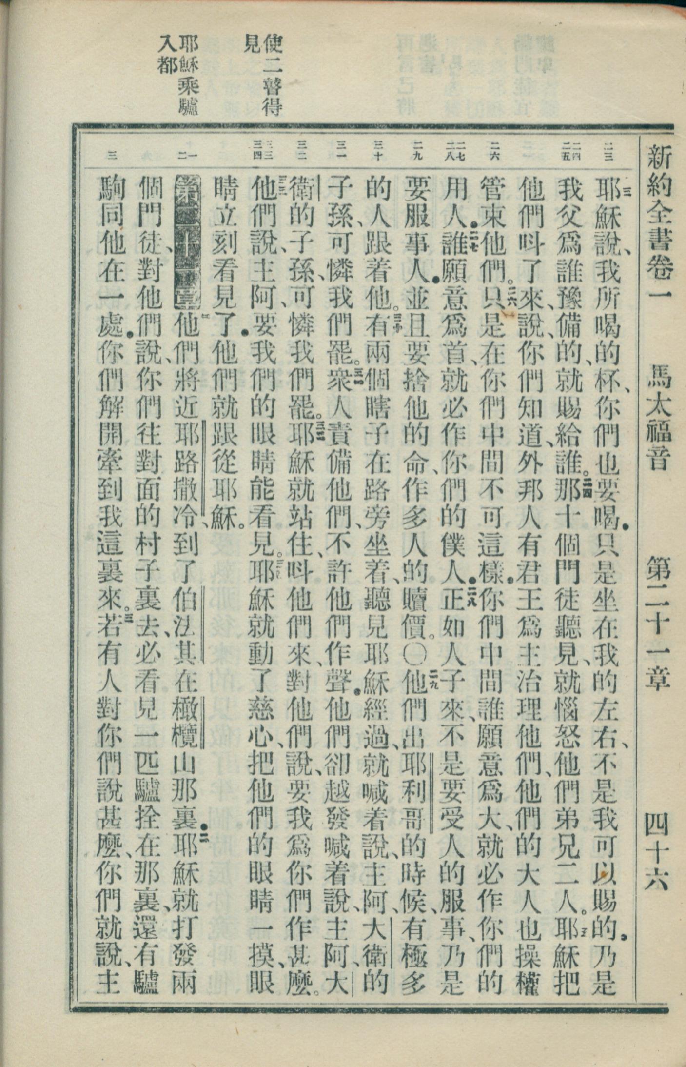 1908年新約全書(官話和合本) 馬太福音 20 章 23 節到 21 章 3 節