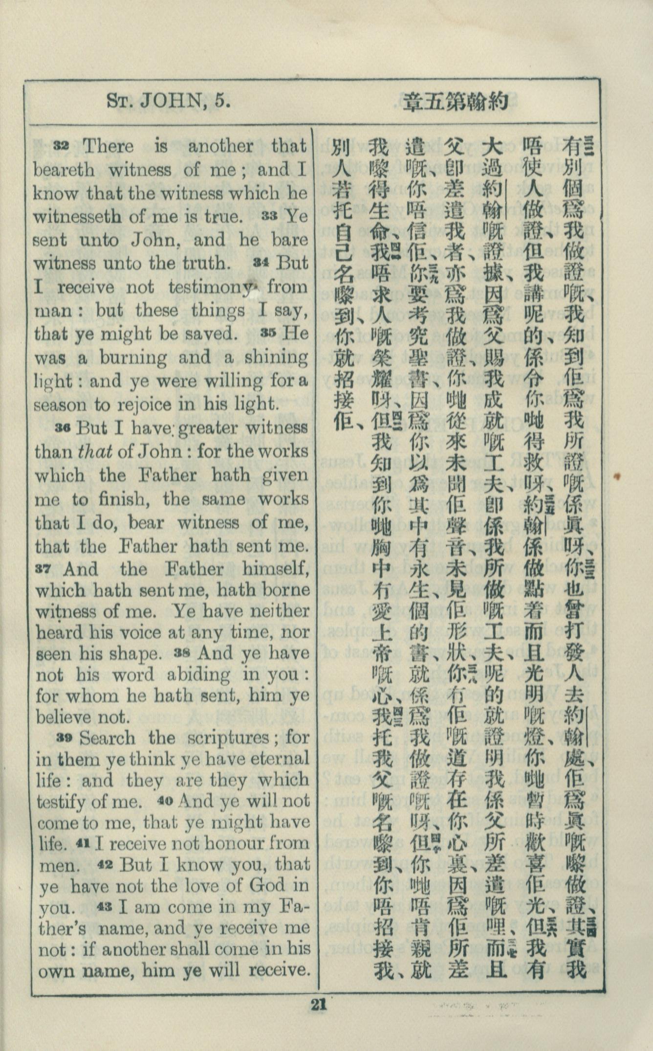 1925年約翰福音中西字 約翰福音 5 章 32 節到 5 章 43 節