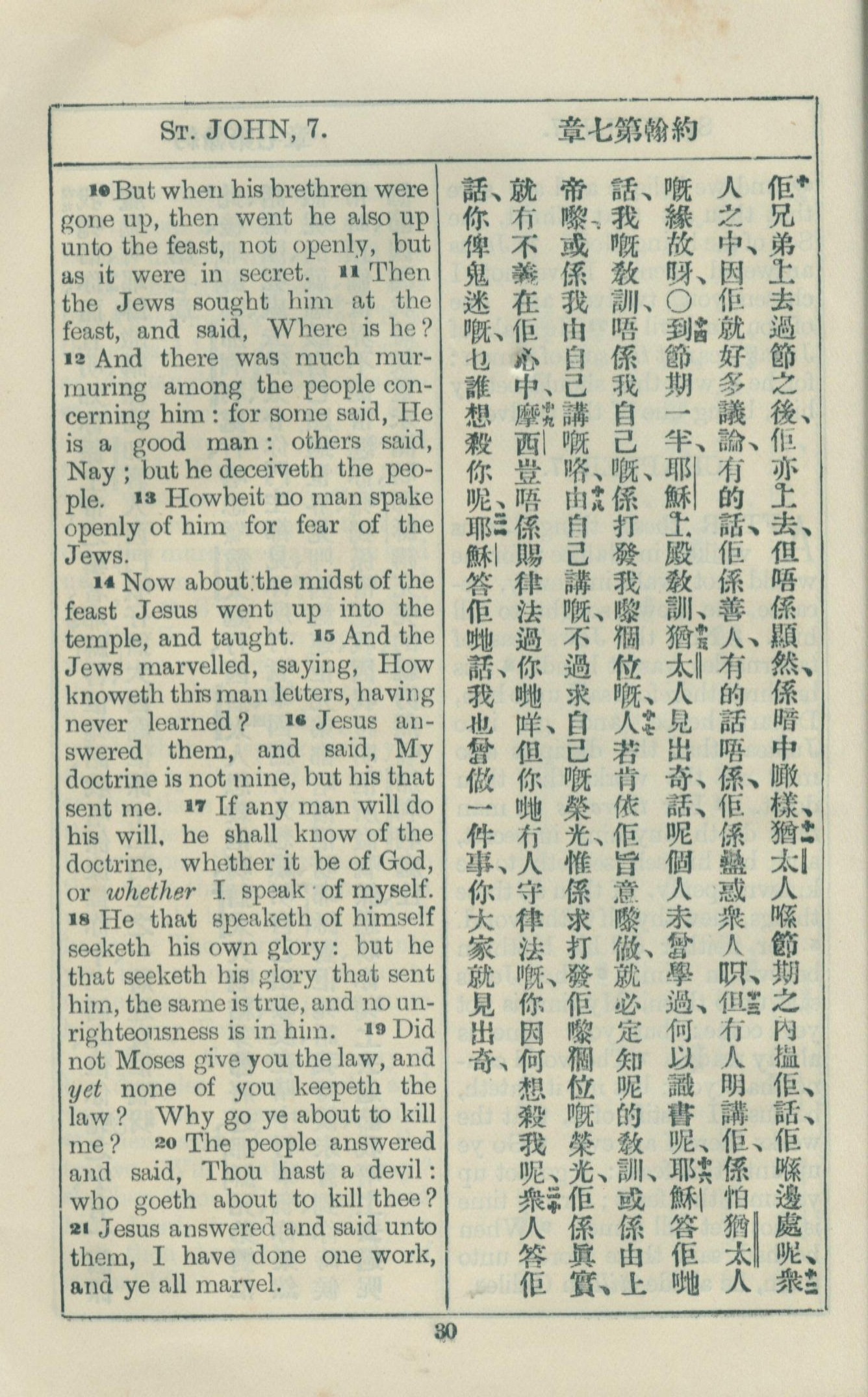 1925年約翰福音中西字 約翰福音 7 章 10 節到 7 章 21 節