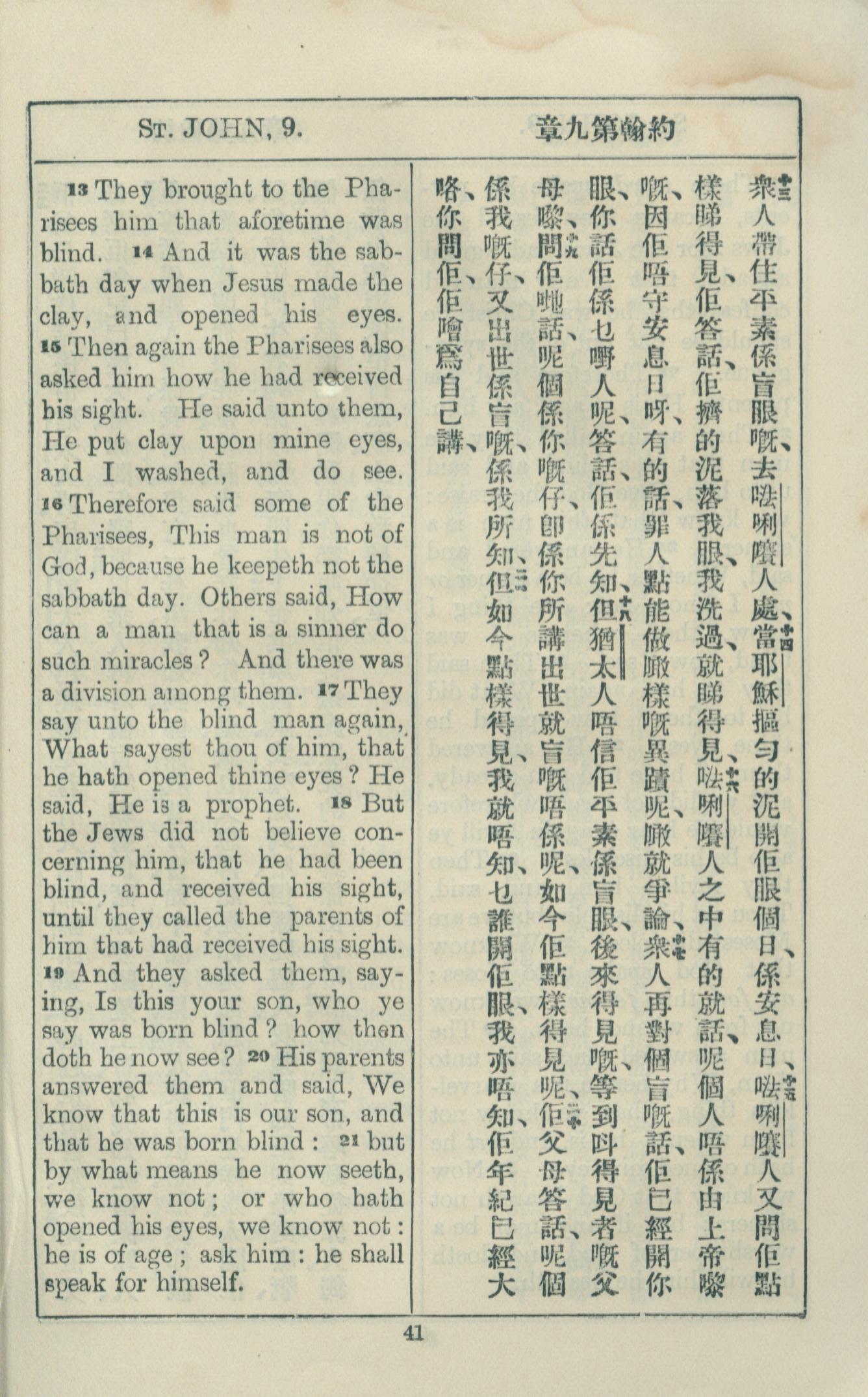 1925年約翰福音中西字 約翰福音 9 章 13 節到 9 章 21 節