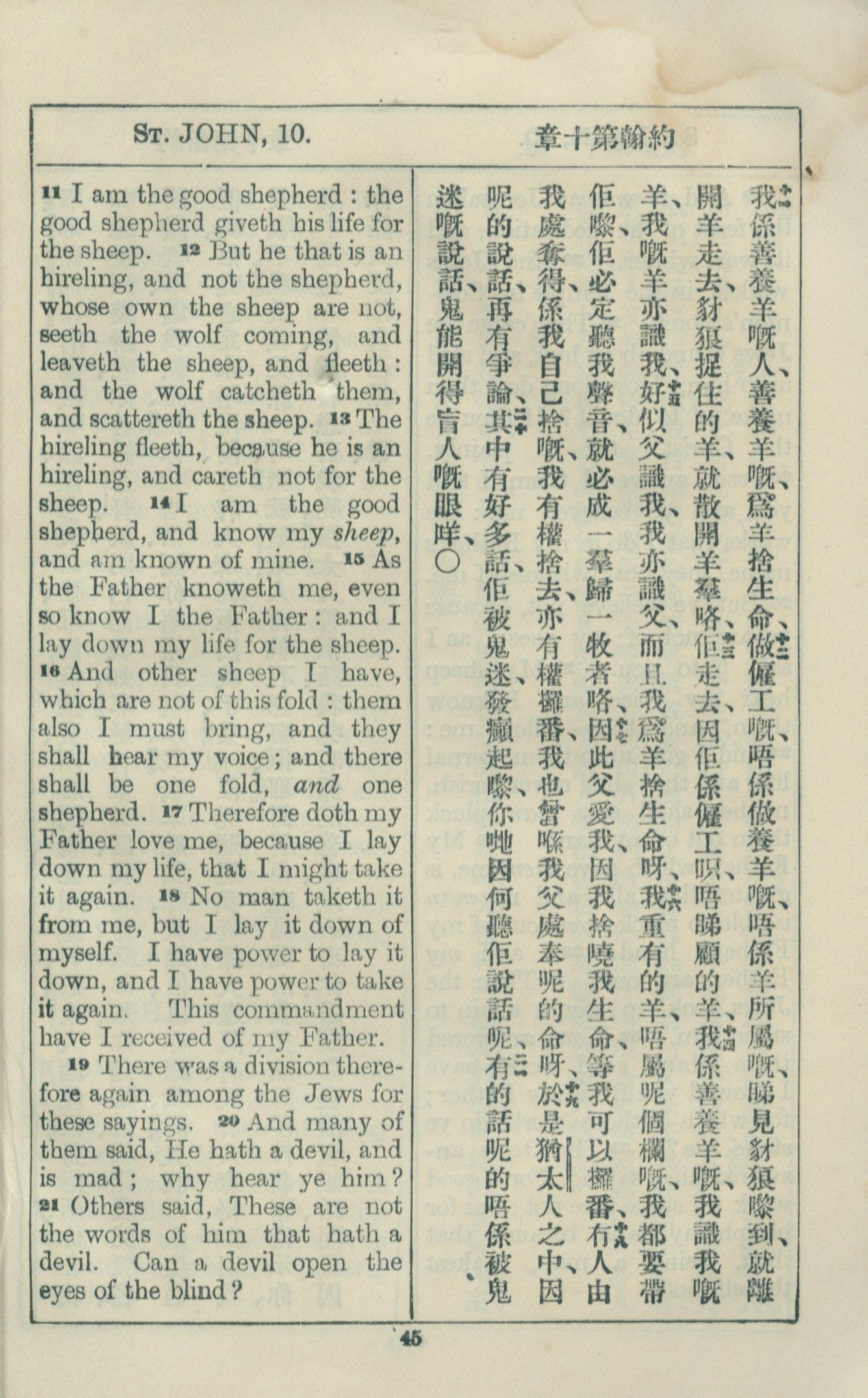 1925年約翰福音中西字 約翰福音 10 章 11 節到 10 章 21 節