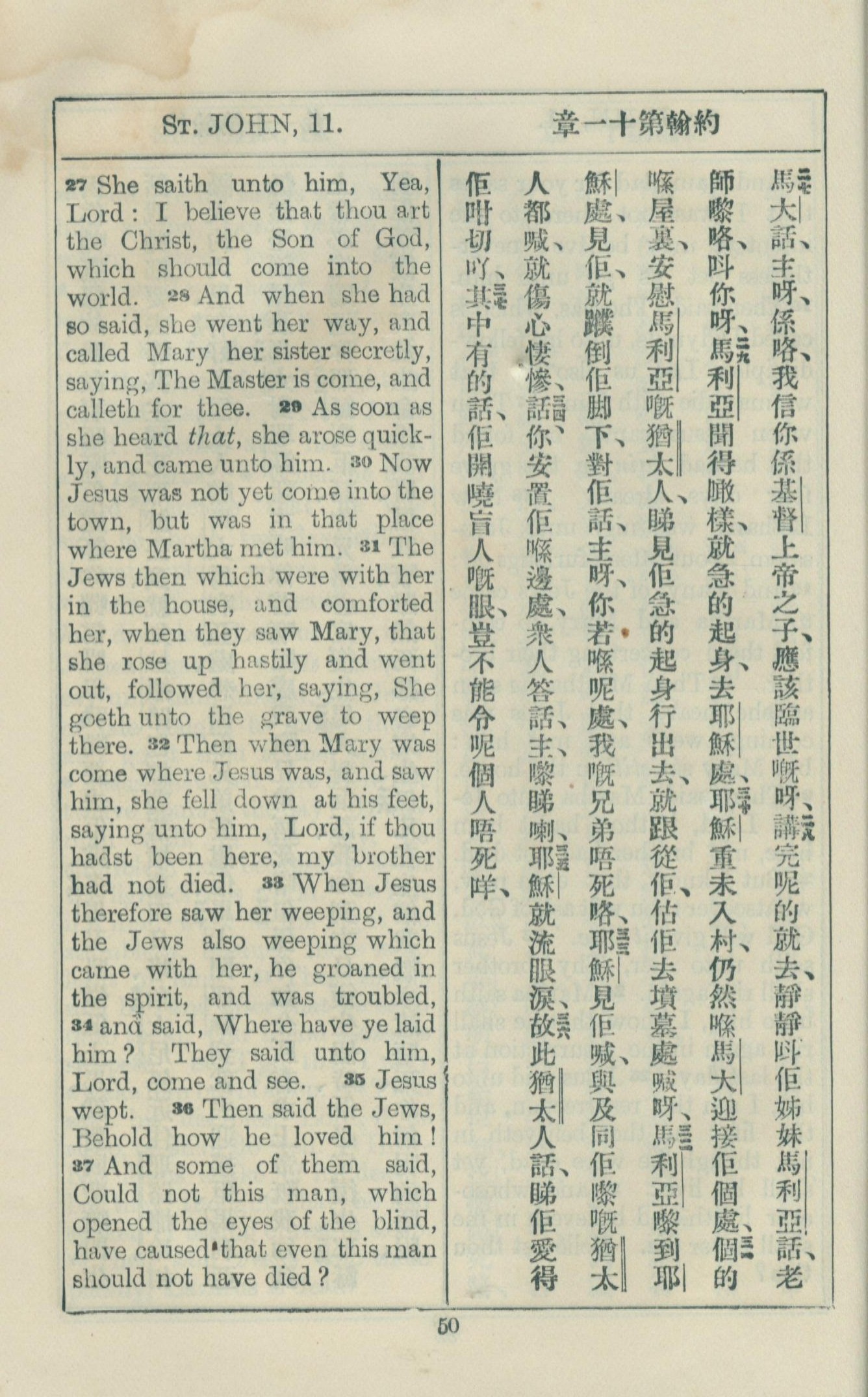 1925年約翰福音中西字 約翰福音 11 章 27 節到 11 章 37 節