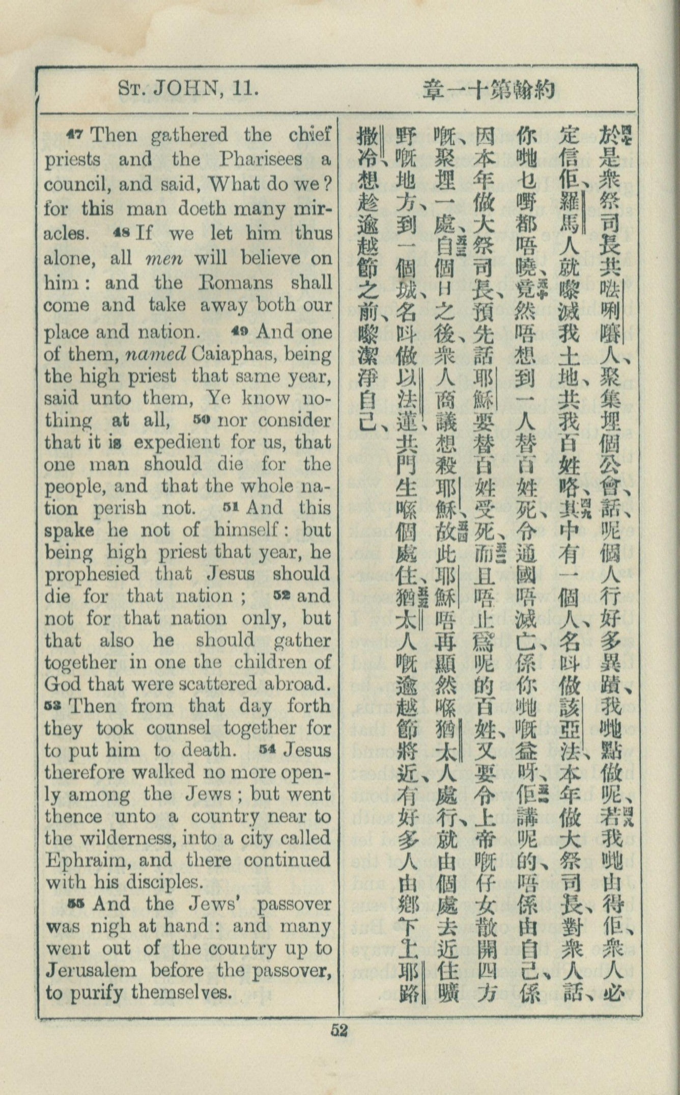 1925年約翰福音中西字 約翰福音 11 章 47 節到 11 章 55 節