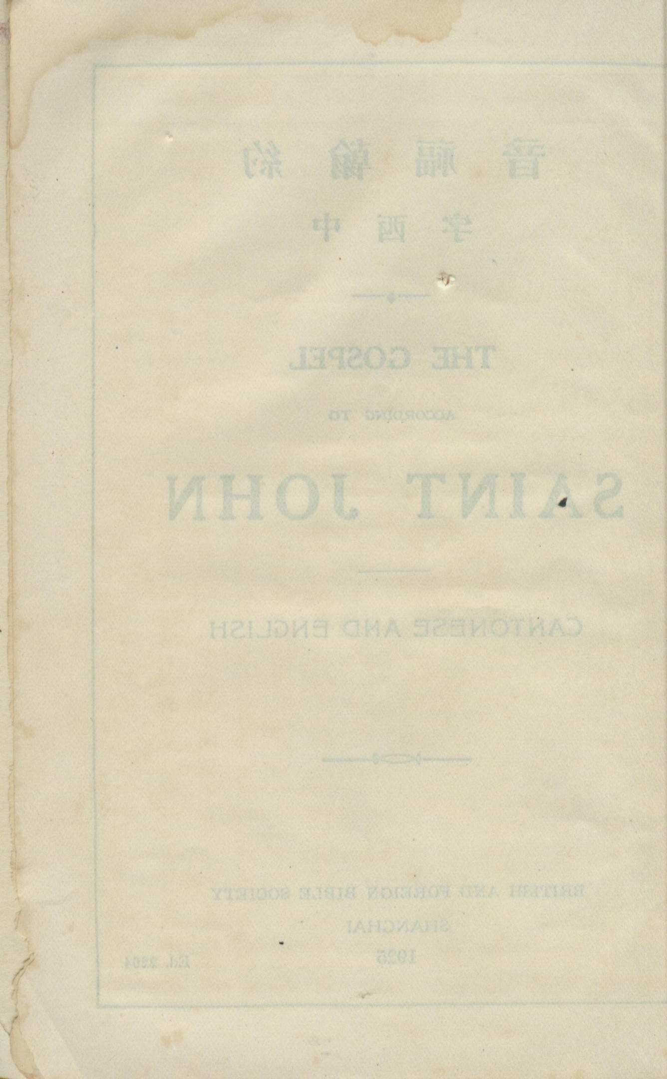 1925年約翰福音中西字 約翰福音 0 章 5 節到 0 章 5 節