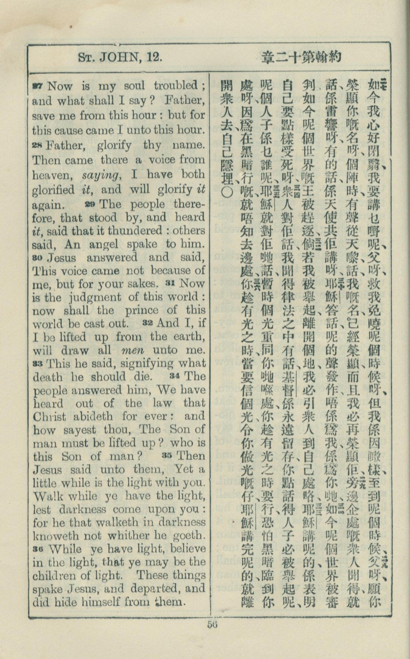 1925年約翰福音中西字 約翰福音 12 章 27 節到 12 章 36 節