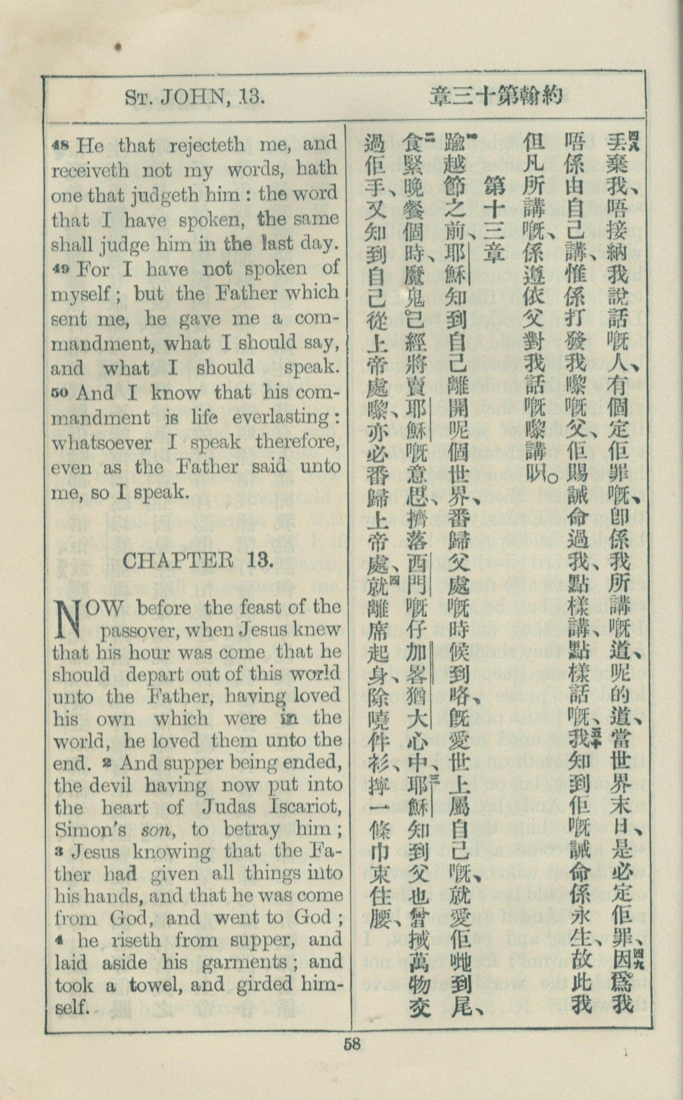 1925年約翰福音中西字 約翰福音 12 章 48 節到 13 章 4 節
