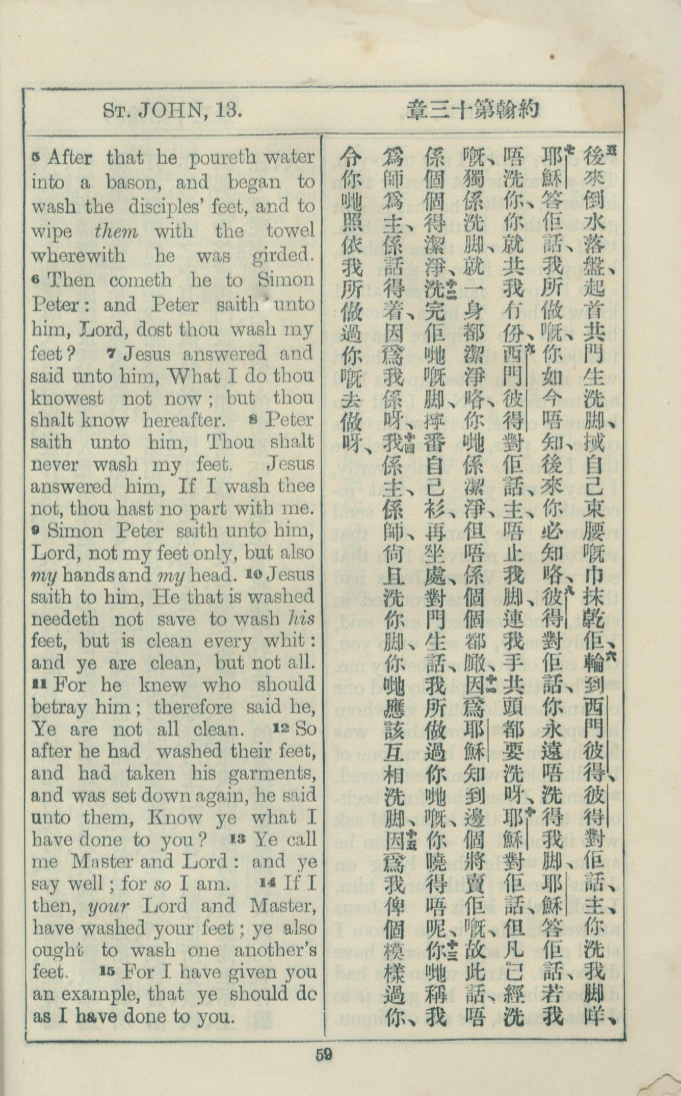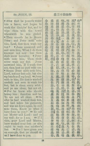 1925年約翰福音中西字 約翰福音 13 章 5 節到 13 章 15 節