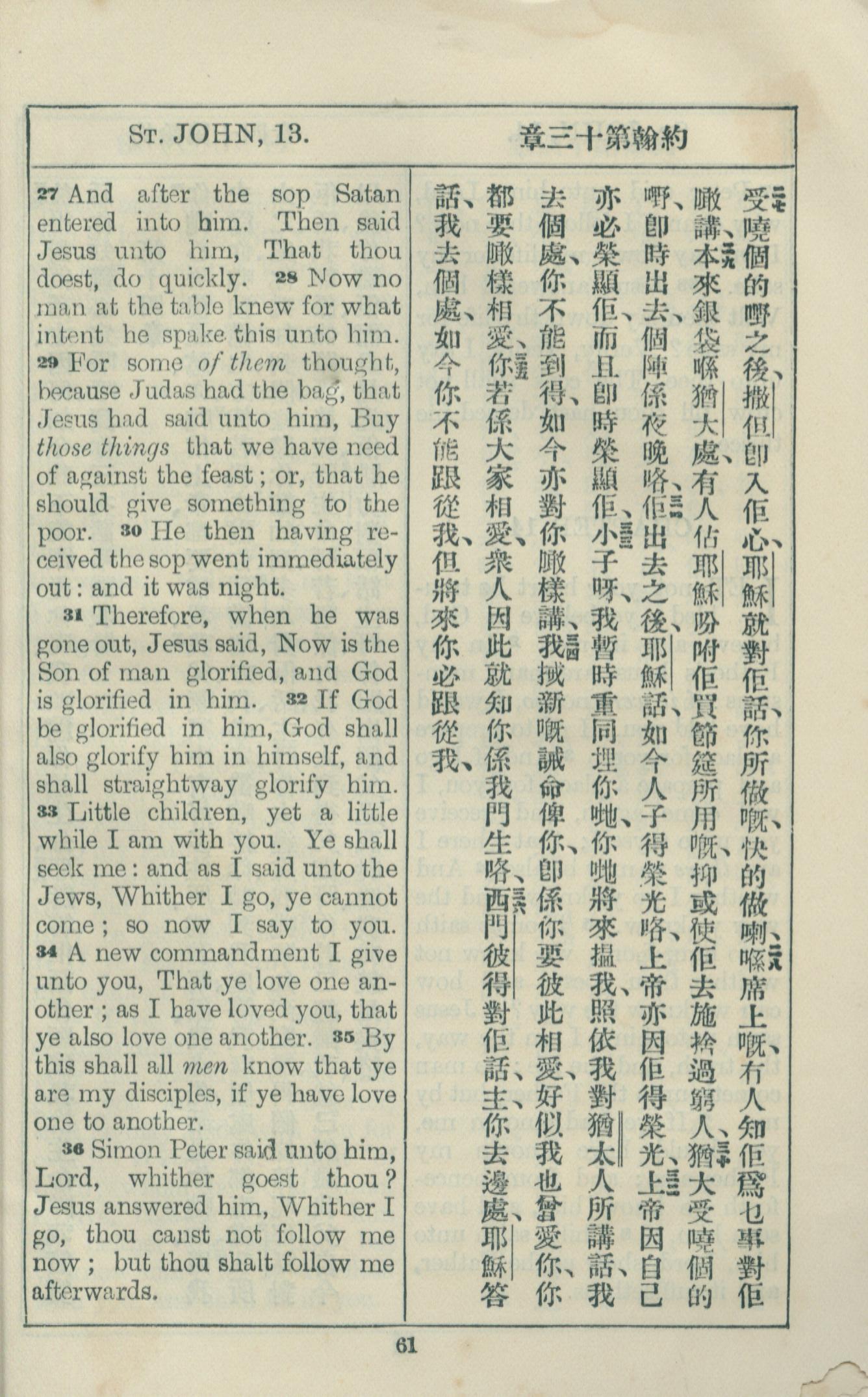 1925年約翰福音中西字 約翰福音 13 章 27 節到 13 章 36 節