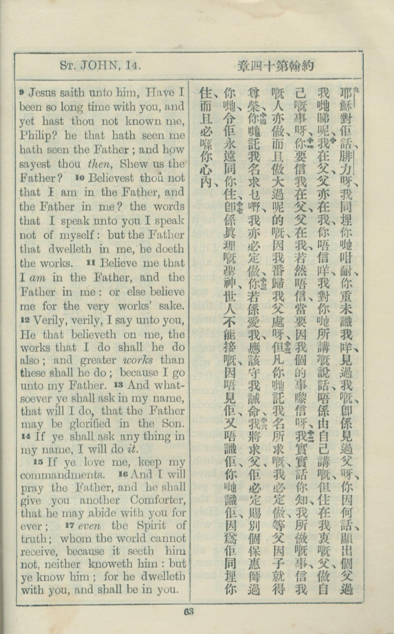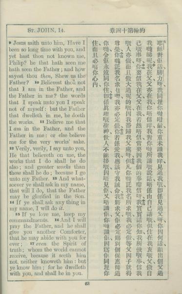 1925年約翰福音中西字 約翰福音 14 章 9 節到 14 章 17 節