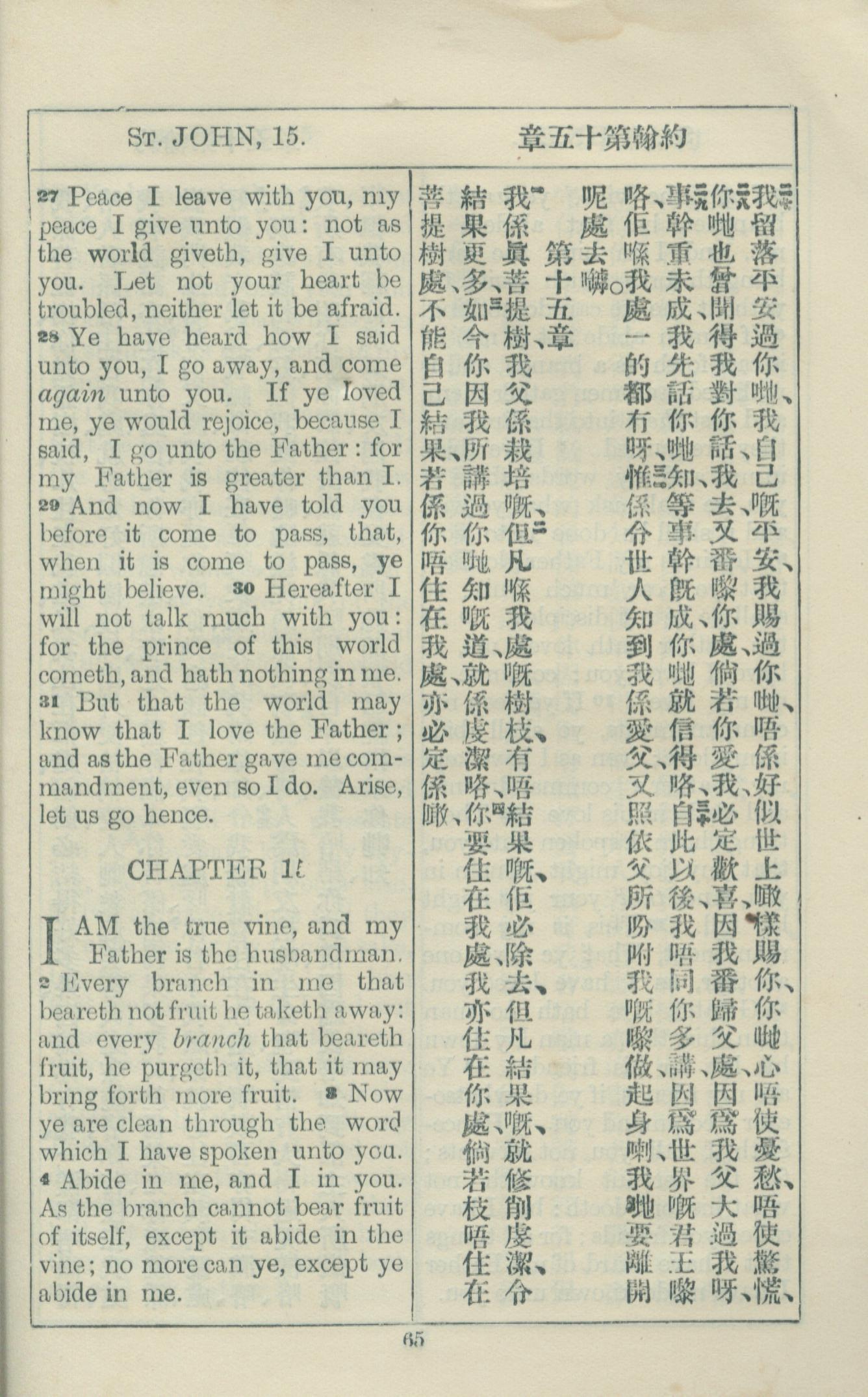 1925年約翰福音中西字 約翰福音 14 章 27 節到 15 章 4 節