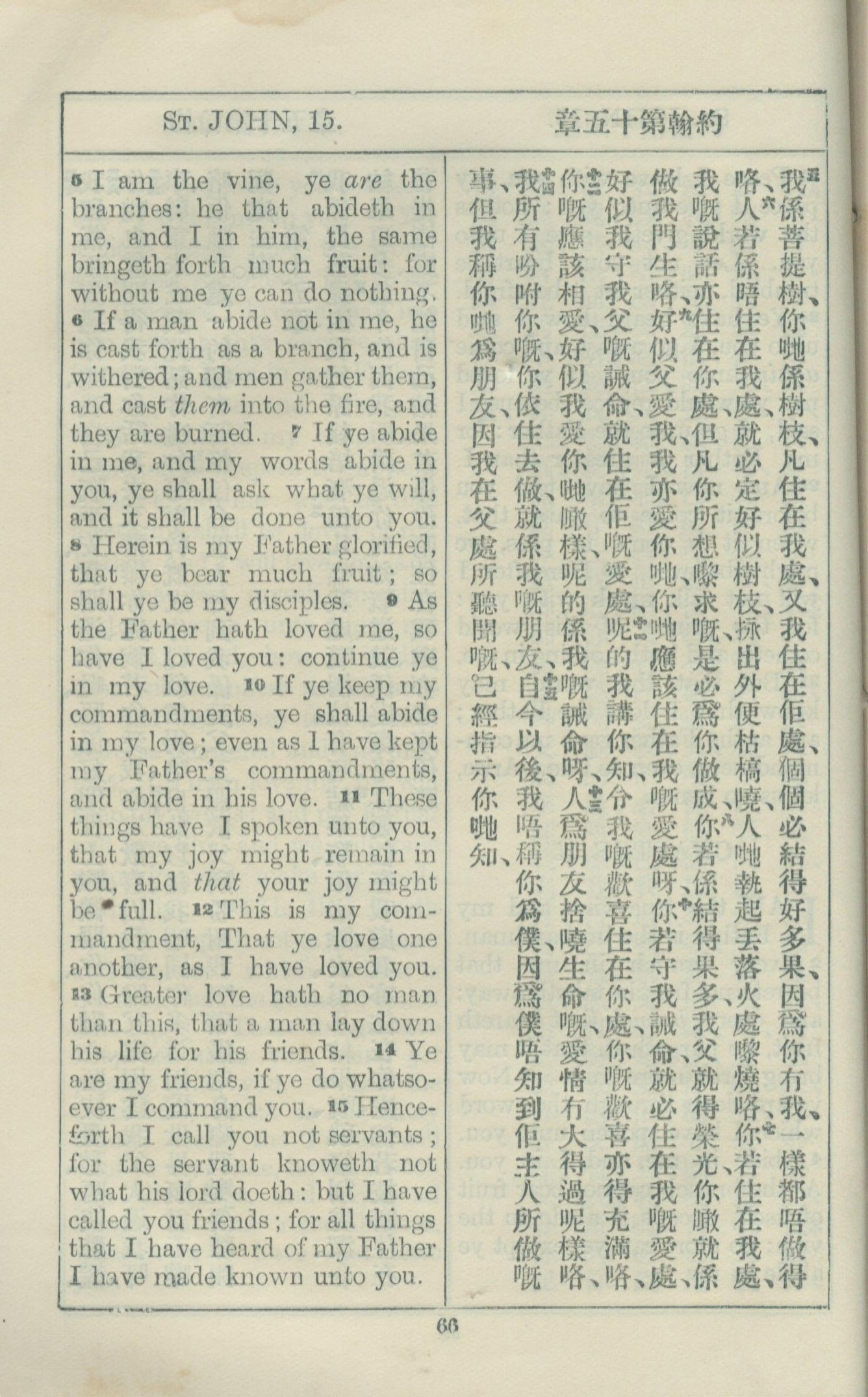 1925年約翰福音中西字 約翰福音 15 章 5 節到 15 章 15 節