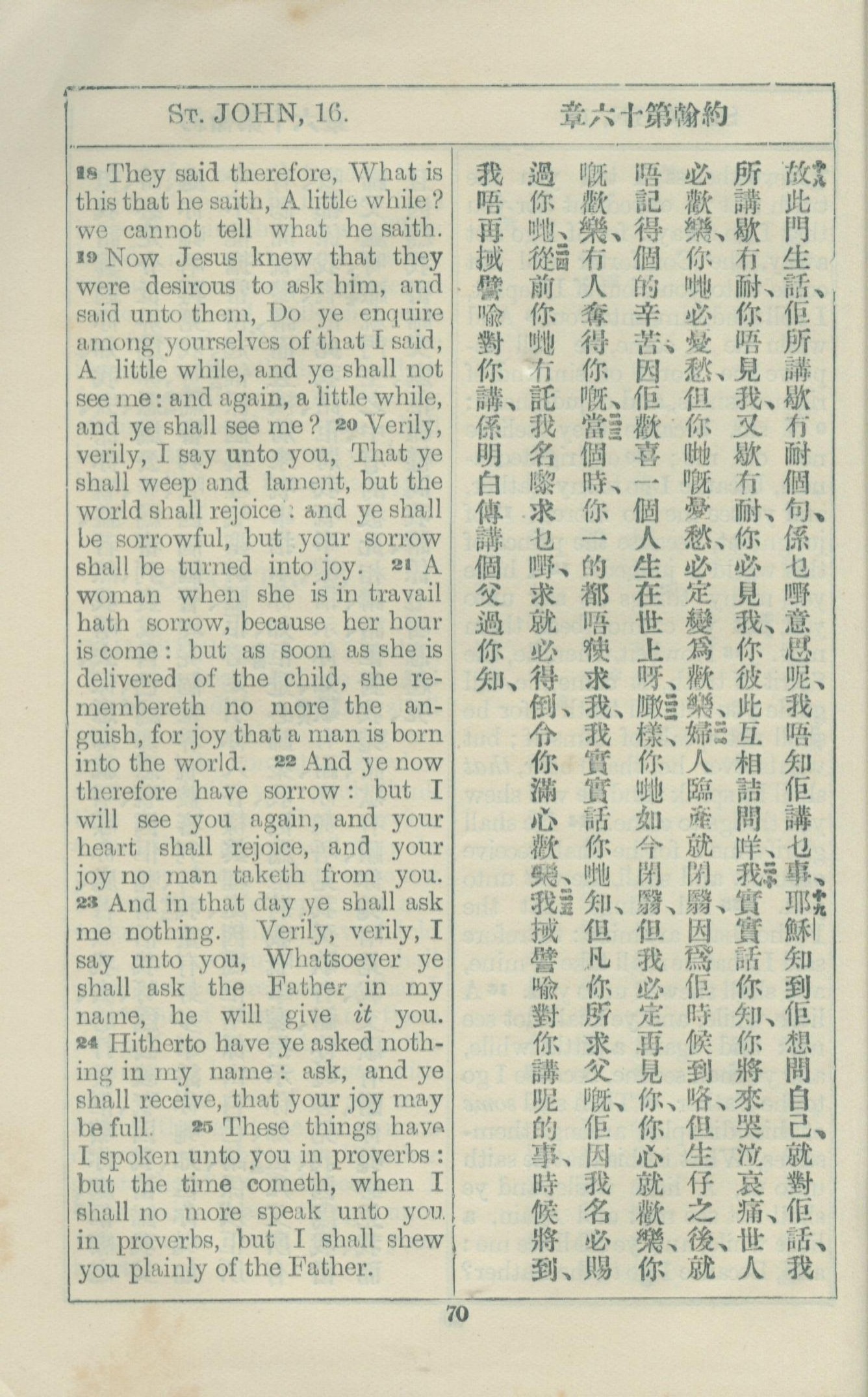 1925年約翰福音中西字 約翰福音 16 章 18 節到 16 章 25 節