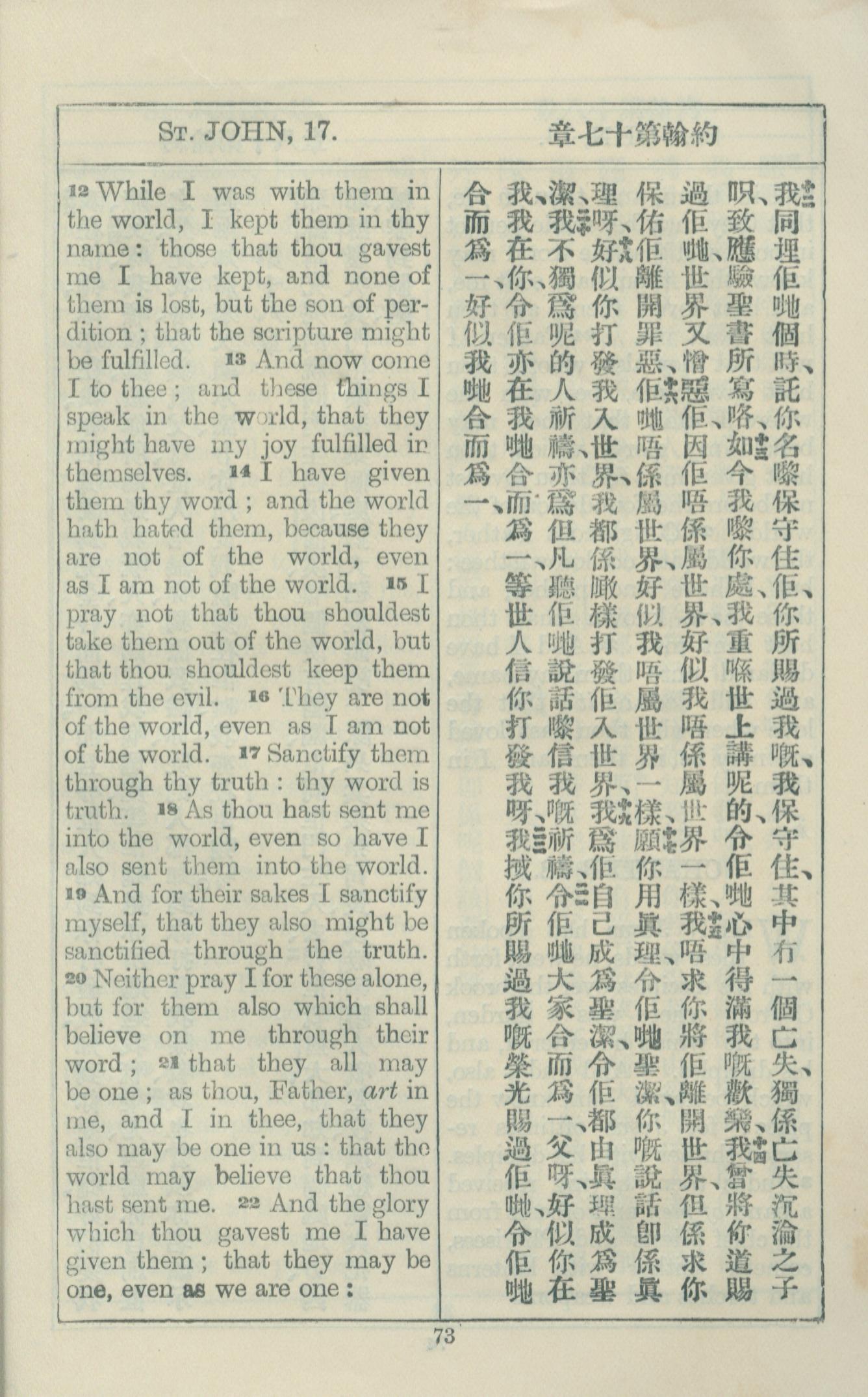 1925年約翰福音中西字 約翰福音 17 章 12 節到 17 章 22 節