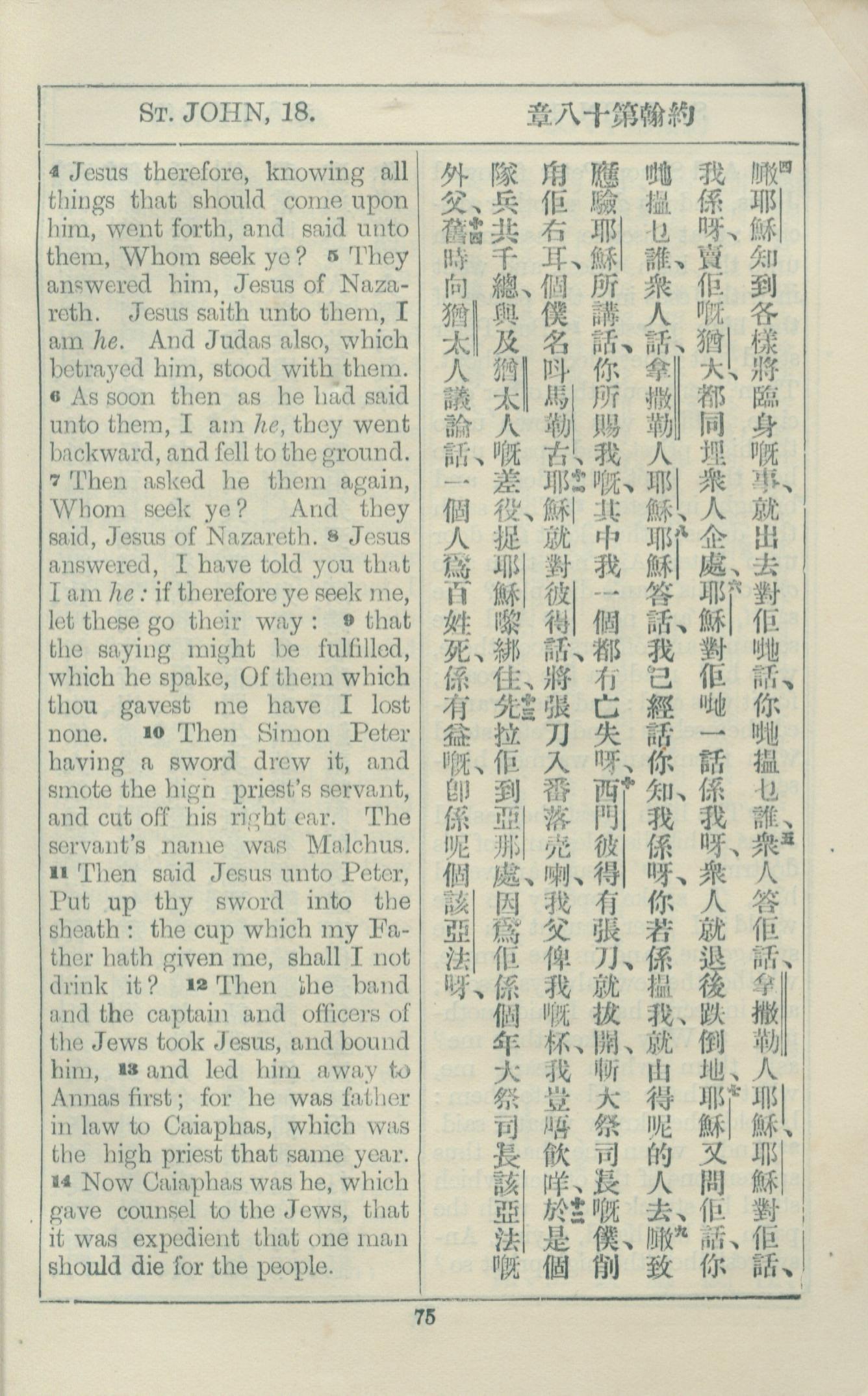 1925年約翰福音中西字 約翰福音 18 章 4 節到 18 章 14 節