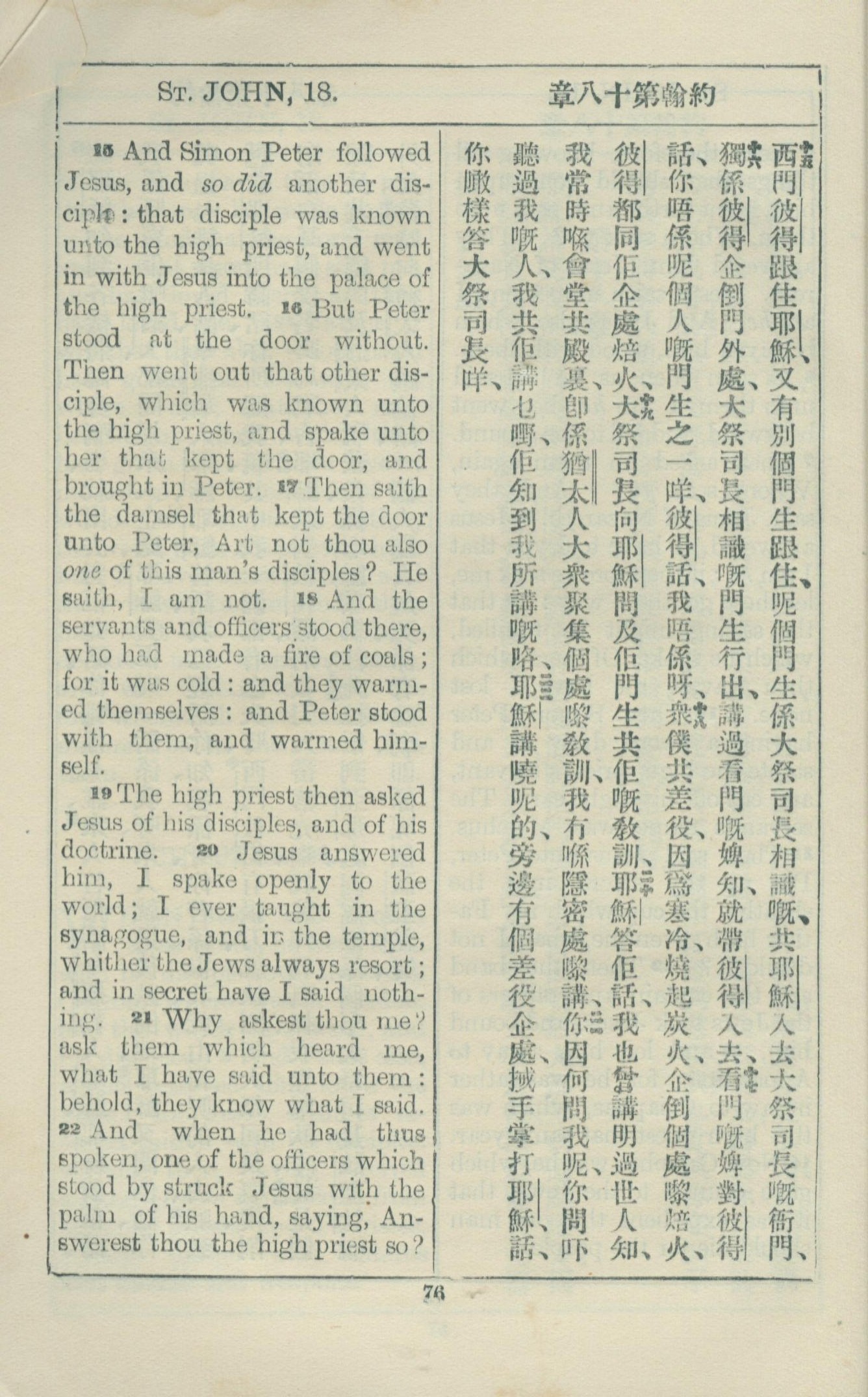 1925年約翰福音中西字 約翰福音 18 章 15 節到 18 章 22 節