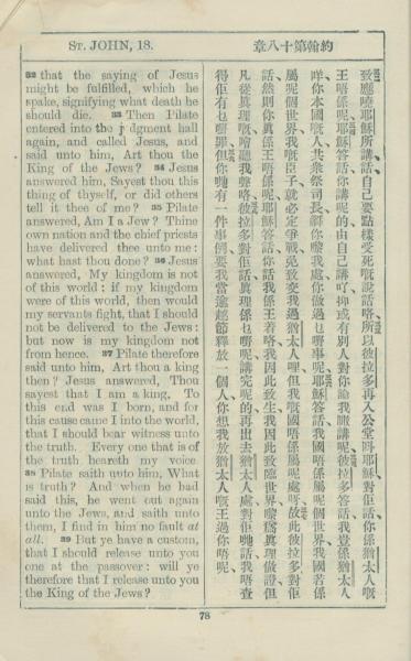 1925年約翰福音中西字 約翰福音 18 章 32 節到 18 章 39 節