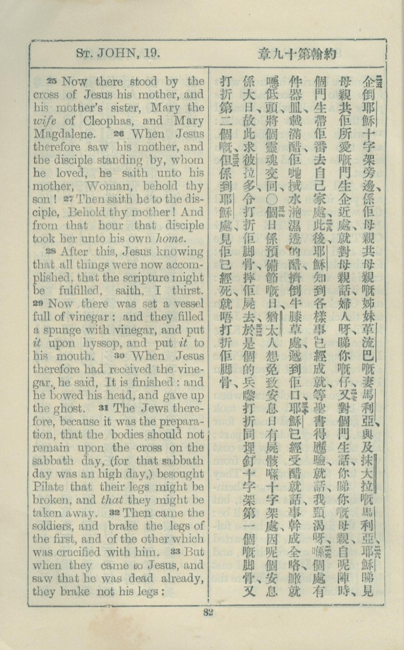 1925年約翰福音中西字 約翰福音 19 章 25 節到 19 章 33 節