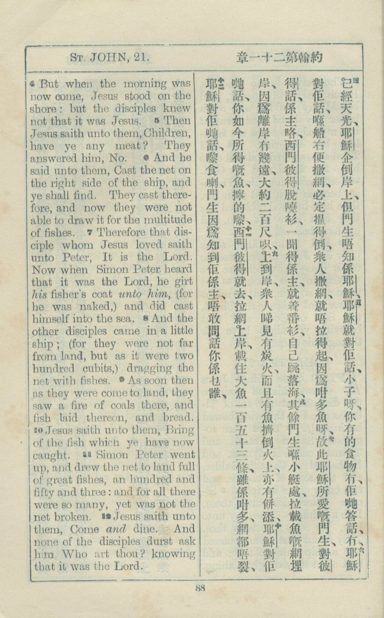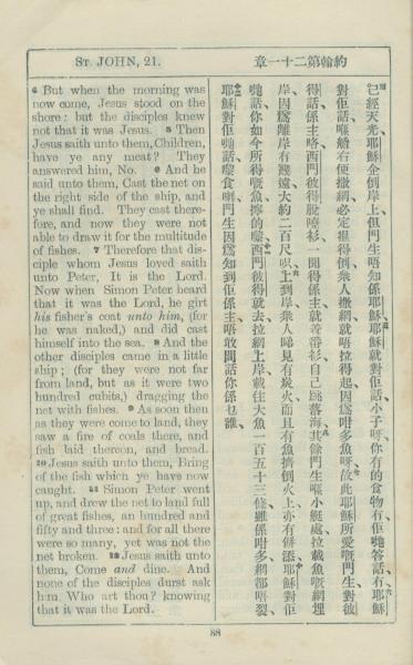1925年約翰福音中西字 約翰福音 21 章 4 節到 21 章 12 節