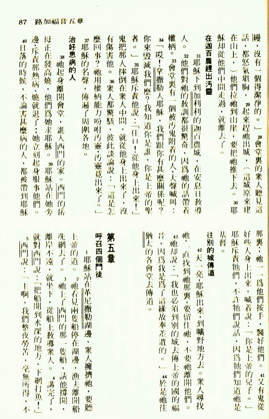 1976年聖經新譯本新約 路加福音 4 章 28 節到 5 章 5 節