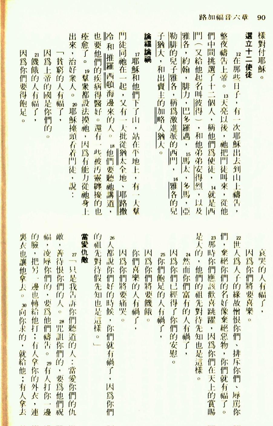 1976年聖經新譯本新約 路加福音 6 章 12 節到 6 章 30 節
