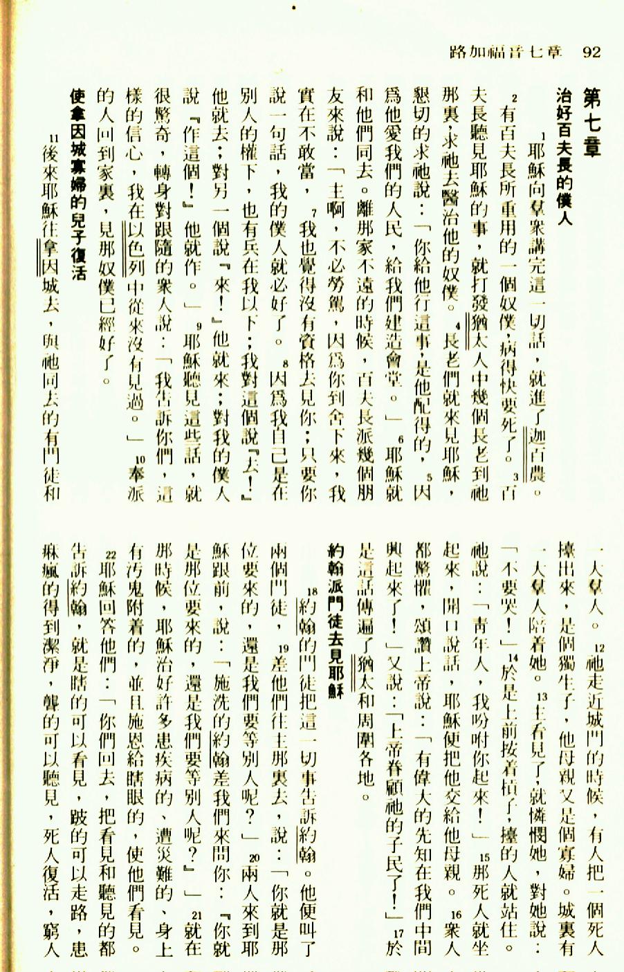 1976年聖經新譯本新約 路加福音 7 章 1 節到 7 章 22 節
