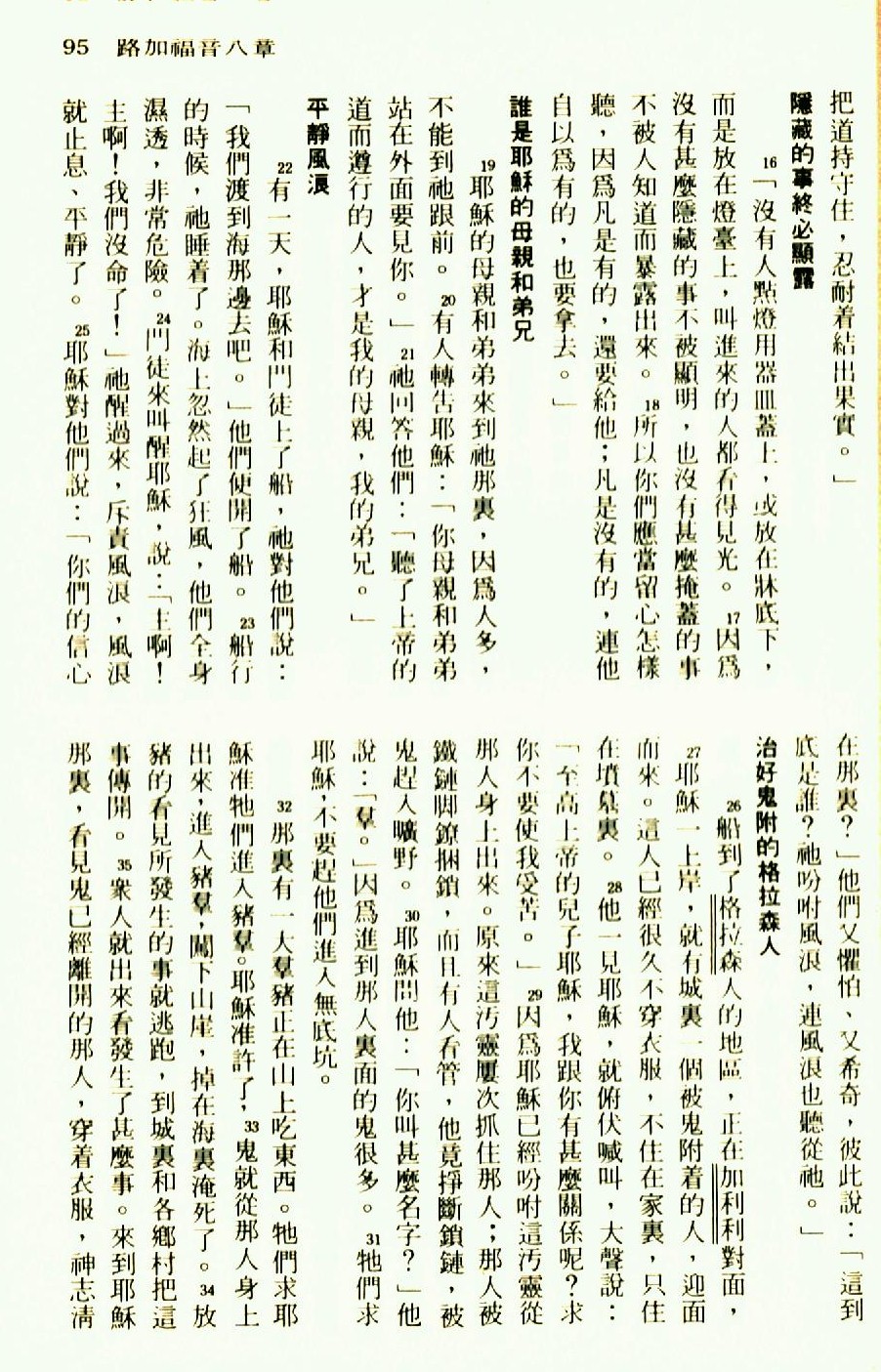 1976年聖經新譯本新約 路加福音 8 章 16 節到 8 章 35 節