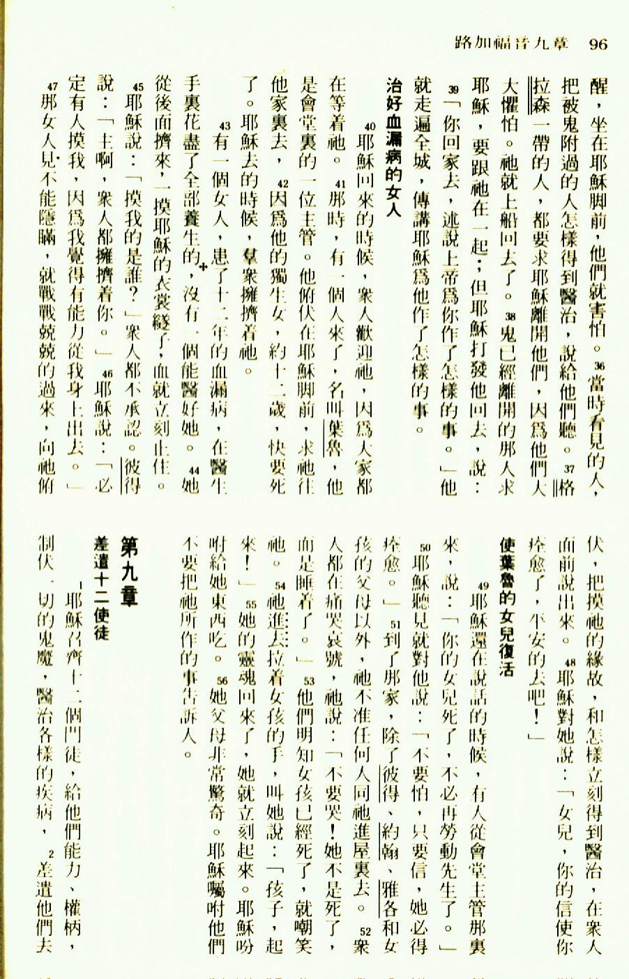 1976年聖經新譯本新約 路加福音 8 章 36 節到 9 章 2 節