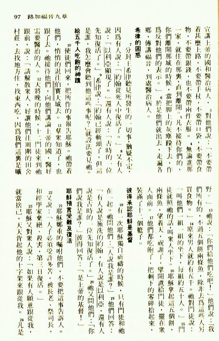 1976年聖經新譯本新約 路加福音 9 章 3 節到 9 章 24 節
