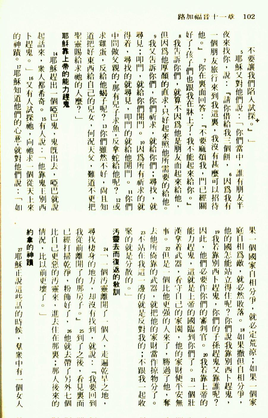 1976年聖經新譯本新約 路加福音 11 章 5 節到 11 章 27 節